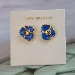 New Tory Burch Blue Gold Logo Flower Stud Earrings$60Phoenix, AZ