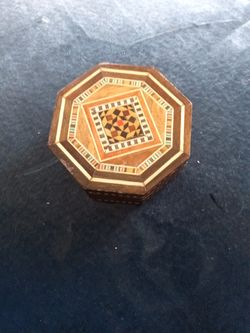 GORGEOUS hexagonal marquetry w/ mosaic inlay 3" Trinket box Made in Spain$45Richardson, TX