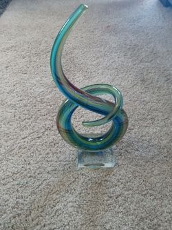 EXQUISITE Murano Italy 12" Sommerso Latticino Curved Glass Sculpture$150Richardson, TX