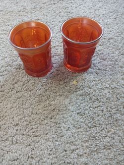 GORGEOUS Pair of Northwood Marigold Singing Birds Carnival Glass Handle Tumbler