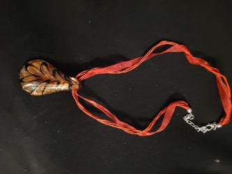 Beautiful Vintage Ribbon Necklace w/ orange Art Glass Pendant (chipped)$10Hialeah, FL