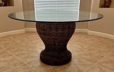 DINING TABLE KITCHEN RATTAN WICKER PEDESTAL GLASS TOP ROUND 108”-LNEW!$500West Palm Beach, FL