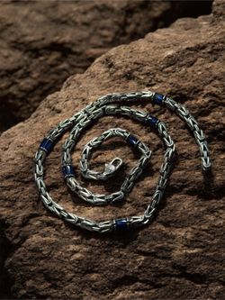 925 Sterling Silver Byzantine Chain Necklace Blue Zirconia 21" 47g Solid$350Los Angeles, CA