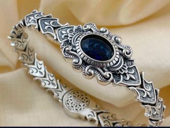 925 Sterling Silver Bracelet with Blue Zirconia Stone, Gothic Design, 9 Inch$420Los Angeles, CA