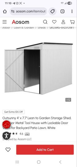 4' x 7.7' Lean to Garden Storage Shed$210West Hills, CA