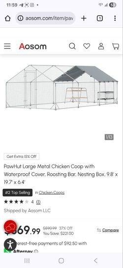 PawHut Large Metal Chicken Coop with Waterproof Cover$199West Hills, CA