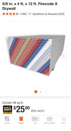5/8 in. x 4 ft. x 12 ft. Firecode X Drywall$18Spring, TX