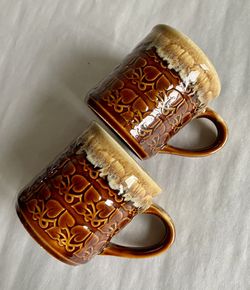 Two Vintage 8-oz Japanese Textured Brown Drip Glaze Mugs $30Lynnwood, WA
