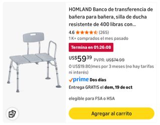 HOMELAND Bathtub Transfer Bench for Tub, 400lbs Heavy Duty Shower Chair with Backrest, Non-Slip Feet, Adjustable Height Shower Bench, Shower Seat for $35Las Vegas, NV