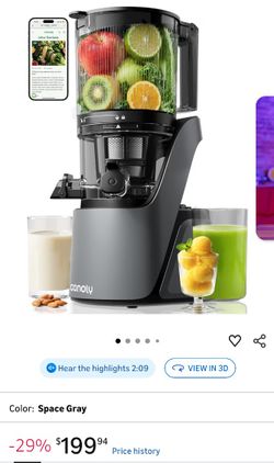 Canoly C16 Cold Press Juicer, 6" Extra Wide Feed Chute, 3-IN-1 Strainers (Juice & Sorbet & Nut Milk), Powerful AC Brushless Motor, Self Precut System,$110Cathedral City, CA