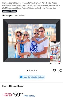Frameo Digital Picture Frame, 10.1 Inch Smart WiFi Digital Photo Frame Electronic with 1280x800 HD IPS Touch Screen, Auto-Rotate, Wall Mountable, Shar$45Cathedral City, CA