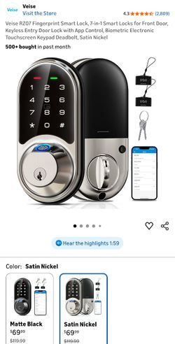 Veise RZ07 Fingerprint Smart Lock, 7-in-1 Smart Locks for Front Door, Keyless Entry Door Lock with App Control, Biometric Electronic Touchscreen Keypa$45Cathedral City, CA