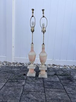 ALABASTER Lamps Pair Of Vintage Stone White Pink$100Oakland Park, FL
