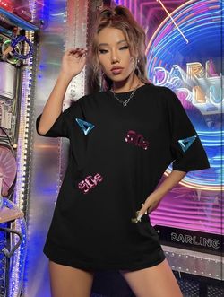 MEDIUM 80s 90s Outfits for Women Sequin 80s Themed Party Outfits Vintage neon Shirts Oversize Birthday Tops$12Fontana, CA