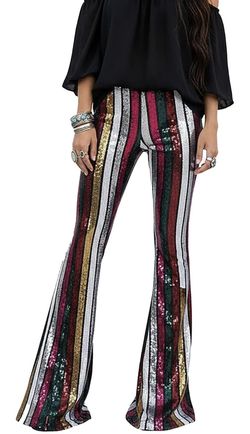 Sequin Flare Pants for Women Sparkly Elastic High Waisted Bell Bottoms Glitter Club Disco Party Trousers$30Fontana, CA