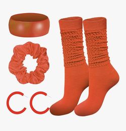 ORANGE 4Pcs 80s 90s Accessories for Women Neon Slouch Scrunch Socks 80s Leg Warmers Heavy Soft Extra Long Scrunchy Socks$10Fontana, CA