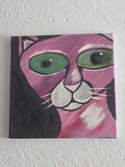 Cat Abstract Painting 8x8 Canvas square Acrylic High Pink kitty$5Auburn, WA