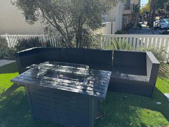 Outdoor Sofa With Beige Cushions And Fireplace $499Santa Monica, CA