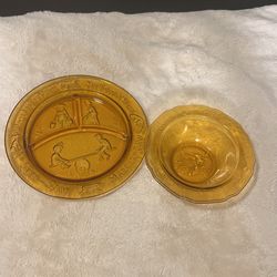 Vintage Set of Two MOTHER GOOSE Amber Glass Dishes "TIARA By R.S," Child's Nursery Rhyme$25Tacoma, WA