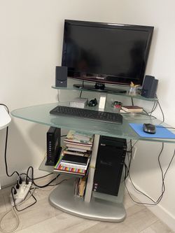 Glass desk for pick up must go today $100 obo pickup in Kendall it’s heavy so needs to be more than 1 person$100Miami, FL