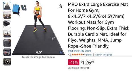 MRO Extra Large Exercise Mat For Home Gym, 8'x4.5'/7'x4.5'/6'x4.5'(7mm) Workout Mats for Gym Flooring, Non-Slip, Extra Thick Durable Cardio Mat, Ideal$95Torrance, CA