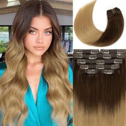 🤩PHENOMENAL🤩 22” Darker Brown to Dark Golden Blonde Human Hair Clip In Extensions (see pics for actual colors)$110Las Vegas, NV