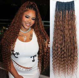 🤩EFFORTLESS BEAUTY🤩 Pre-Looped Goddess Ombre Brown #1B/30 Boho Crochet Box Braids with Human Hair Deep Wave Curls$100Las Vegas, NV