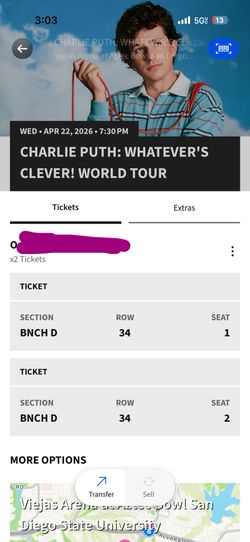 Charlie Puth Tickets 🎫 $60San Diego, CA