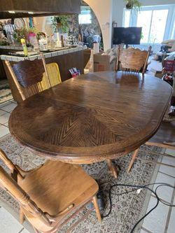 Solid Wood Antique Table W/ 4 Chairs.Has Extra Piece To extend table.Three toed claw foot legs.$50Martinez, CA