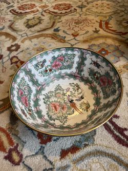 Mid Century Chinese Export Rose Medallion Punch Bowl on Wood Stand$250Dedham, MA