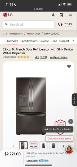 LG 29cu. ft. Black Stainless Steel French Door Refrigerator LRFWS2906D$999Mesquite, TX