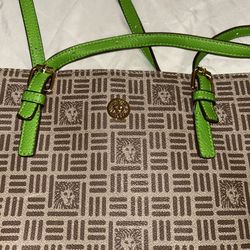 ANNE KLEIN Brown Green Beige Faux Leather Lion Logo Shoulder Bag Purse $35Boston, MA