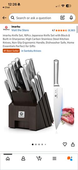 New imarku Knife Set, 16Pcs Japanese Knife Set with Block & Built-in Sharpener, High Carbon Stainless Steel Kitchen Knives, Non-Slip Ergonomic Handle,$60Gardena, CA