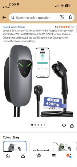 SoldNew Aries Nexus Level 2 EV Charger 40Amp NEMA14-50 Plug EV Charger with 25ft Cable, WiFi APP RFID Card, 240V J1772 Electric Vehicle Charging Stations$120Gardena, CA