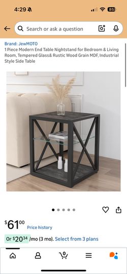 New 1x Modern End Table Nightstand for Bedroom & Living Room, Tempered Glass& Rustic Wood Grain MDF, Industrial Style Side Table$20Gardena, CA