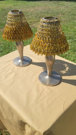 Pottery Barn Brushed Nickel Tealight Candle Holder. Amber Beaded Shade. Set (2)Tea Light Candle Holders$40Irwindale, CA