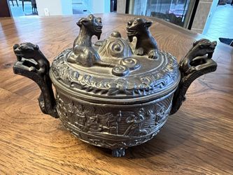 Mid-century Chinese Lidded Bronze Incense Burner Decorated with Mythological Creatures$55Round Rock, TX