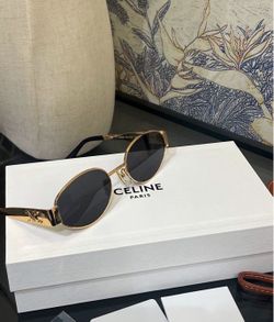 Side Logo Engraving Alloy Metal Oval Sunglasses Women's Gold$300West Covina, CA
