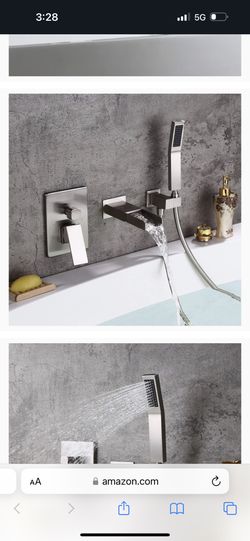 Homary Waterfall Spout Wall Mounted Tub Faucet Brushed Nickel for Bathroom Modern Single Handle Wall Bathtub Filler with Hand Shower, Solid Brass$160Houston, TX