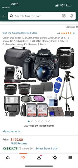 Canon EOS Rebel T7 DSLR Camera Bundle with Canon EF-S 18-55mm f/3.5-5.6 is II Lens + 2X 32GB Memory Cards + Filters + Preferred Accessory Kit (Renewed$425Houston, TX