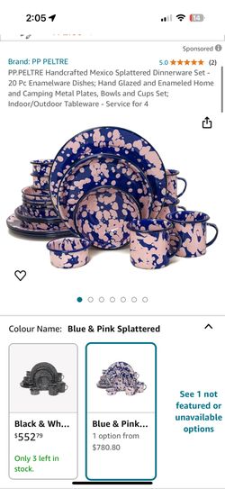 PP.PELTRE Handcrafted Mexico Splattered Dinnerware Set - 20 Pc Enamelware Dishes; Hand Glazed and Enameled Home and Camping Metal Plates, Bowls and Cu$150Sacramento, CA