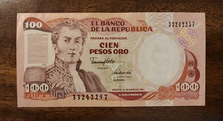 1991 Colombian 100 Peso$25Clovis, CA