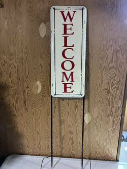 Decorative welcome Metal sign with red lettering.$10Massanutten, VA