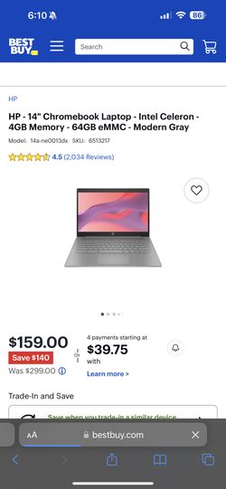 HP - 14" Chromebook Laptop - Intel Celeron - 4GB Memory - 64GB eMMC - Modern Gray$100Monroe Township, NJ