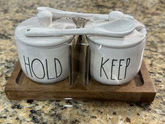 Rae Dunn - hold and keep jars with spoons and wood base$10Oakland Park, FL