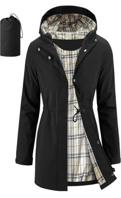 iCreek Women's Rain Jacket Packable Long Raincoat Hooded Plaid Lined Trench Coat Waterproof Windproof Lightweight for Outdoor$50Fresno, CA