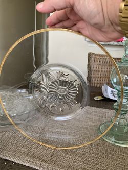 Vintage glass serving platter with a 14 karat gold rim$5Streamwood, IL