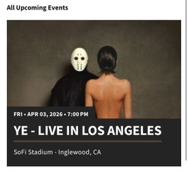 YE - LIVE IN LOS ANGELES CONCERT Friday April 3$600Placentia, CA