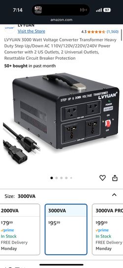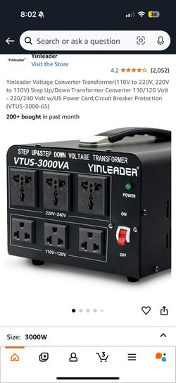 LVYUAN 3000 Watt Voltage Converter Transformer Heavy Duty Step Up/Down AC 110V/120V/220V/240V Power Converter With 2 US Outlets, 2 Universal Outlets, $40Maricopa, AZ