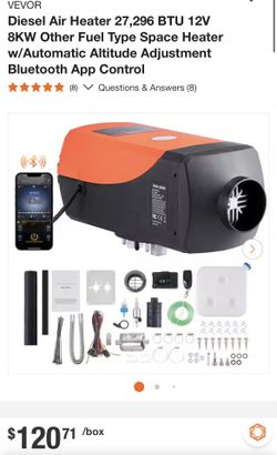 Diesel Air Heater 27,296 BTU 12V 8KW Other Fuel Type Space Heater w/Automatic Altitude Adjustment Bluetooth App Control$30Glendale, AZ